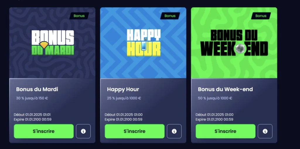 Bonus réguliers : mardi, vendredi, cashback, codes promo