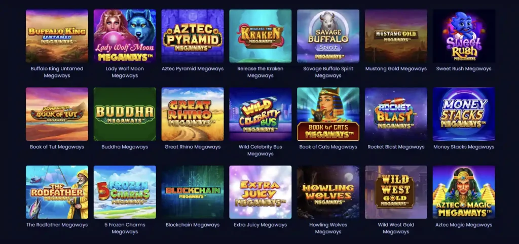 Pampago propose également une catégorie dédiée aux jeux Megaways, très appréciés pour leur grande volatilité et leurs milliers de combinaisons possibles.